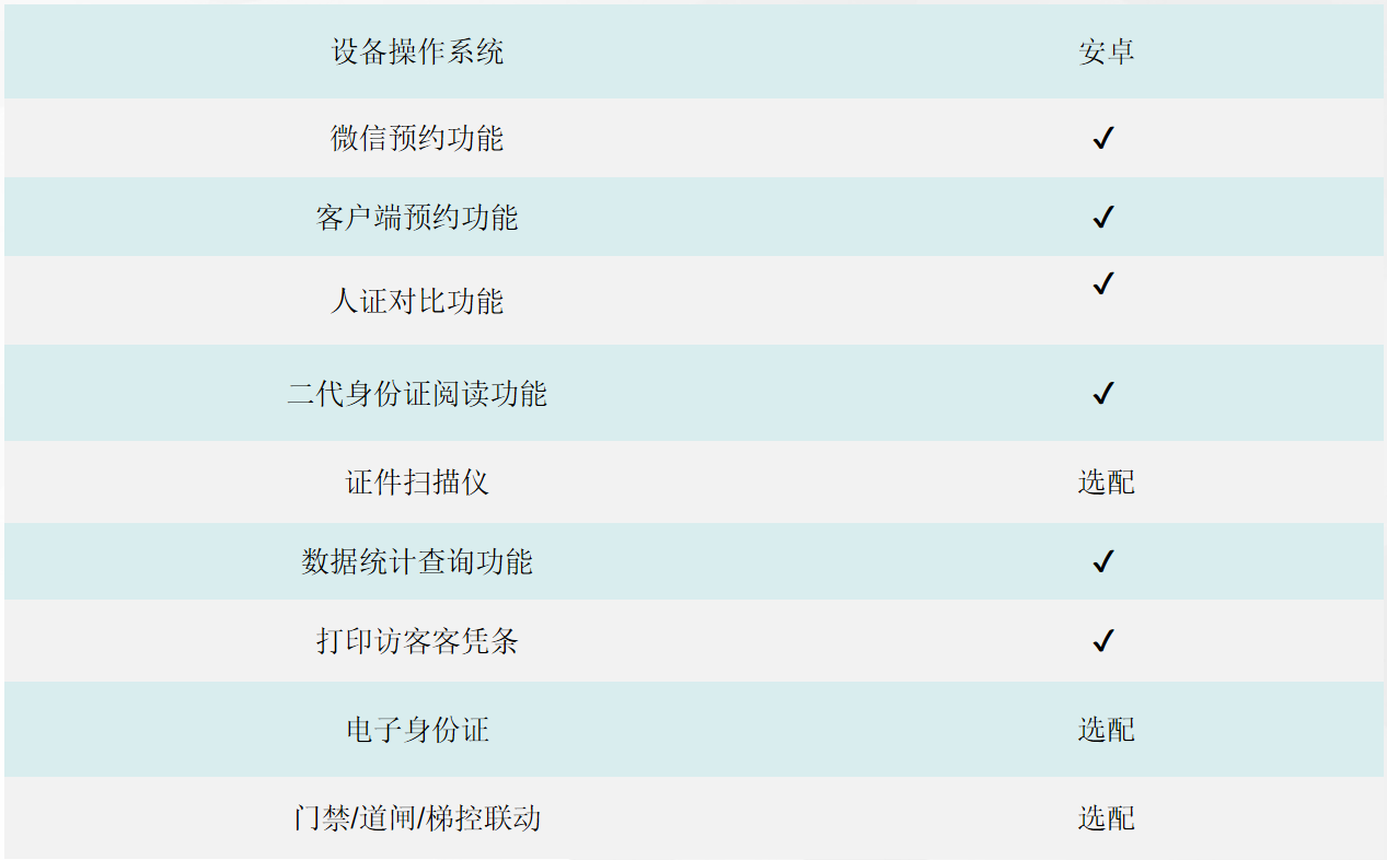 1.房卡收發(fā) 2.身份證識別 3.人臉識別 4.人證核驗 5.小票打印 6.二維碼掃描 7.POS 支付(外部擴展)